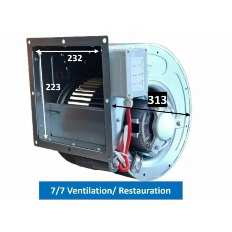 Moto-ventilateur DD7/7 type centrifuge radial avec une grande puissance pour une extraction efficace, idéal pour maintenir un environnement sain dans les cuisines professionnelles équipées de hottes.