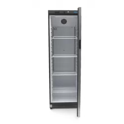 Lorsque l'on travaille avec des ingrédients frais, il est important d'avoir un réfrigérateur qui garde tout au frais le plus longtemps possible. Ce réfrigérateur professionnel noir a une capacité brute de 400 litres et est équipé de quatre étagères réglables. Vous pouvez ainsi choisir la meilleure disposition en fonction de vos besoins. Il offre également la possibilité d'augmenter le nombre d'étagères pour créer des compartiments supplémentaires. La porte en verre est munie d'une serrure qui vous permet de voir les produits réfrigérés sans ouvrir le réfrigérateur.