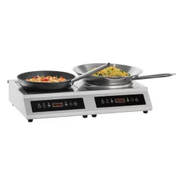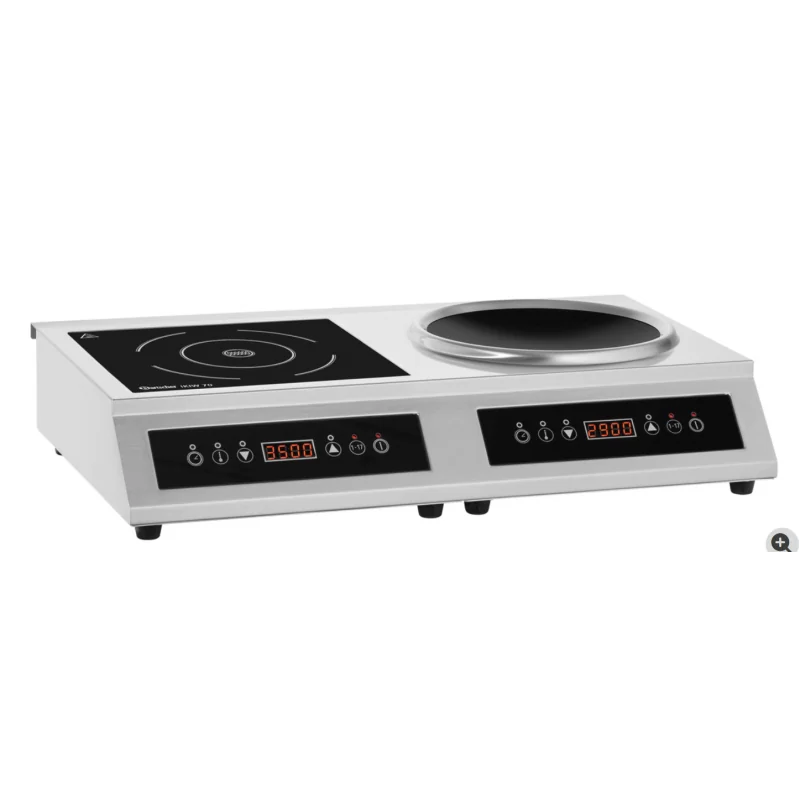 La combinaison d'un wok à induction et d'une Plaque à induction de 3,5 kW chacun offre une flexibilité maximale sur un encombrement minimal, ce qui est idéal pour une utilisation professionnelle avec des exigences changeant fréquemment.