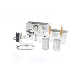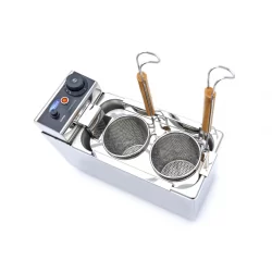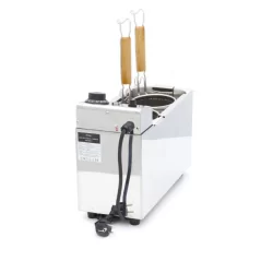 Ce cuiseur de pâtes a une capacité de deux récipients de 2 litres et dispose de deux paniers en acier inoxydable pour préparer les pâtes ou les nouilles séparément. Il est idéal pour une utilisation quotidienne intensive dans toute cuisine professionnelle. Le boîtier en acier inoxydable aux coins arrondis facilite le nettoyage.