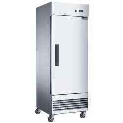 Intérieur et extérieur en acier inoxydable, sol et angles arrondis du meuble pour un nettoyage facile.