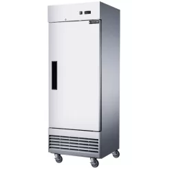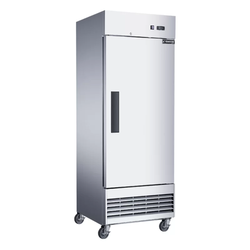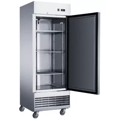 Intérieur et extérieur en acier inoxydable, sol et angles arrondis du meuble pour un nettoyage facile.