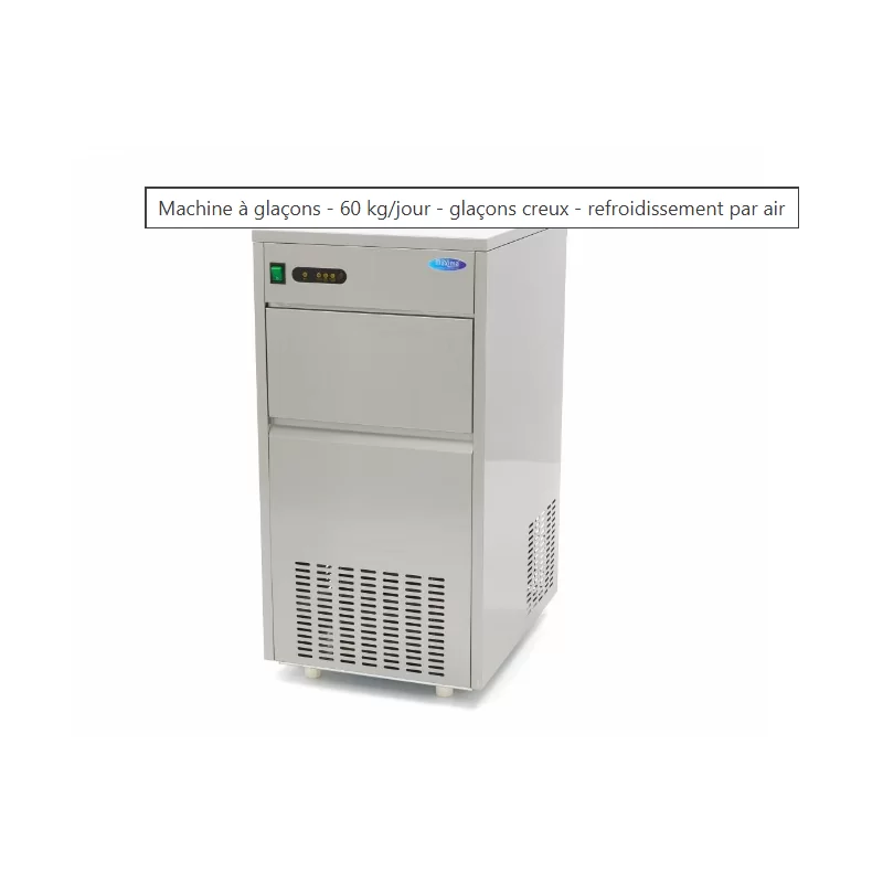 Lorsque l'on sert des cocktails, des boissons non alcoolisées ou d'autres boissons alcoolisées, les glaçons sont un élément essentiel du processus. Vous pouvez les utiliser au bar, sur la terrasse ou au restaurant pour maintenir les boissons au frais ou pour présenter d'autres aliments de manière attrayante. Grâce à cette machine à glaçons refroidie par air, vous pouvez produire jusqu'à 60 kg de glaçons par 24 heures. Elle comprend également un espace de stockage qui vous permet de conserver jusqu'à 13 kg de glaçons pour un accès rapide et facile. Les glaçons produits par cette machine ont la forme d'une balle et sont creux à l'intérieur. Ce modèle a été spécialement conçu pour être utilisé sous le bar ou le comptoir.