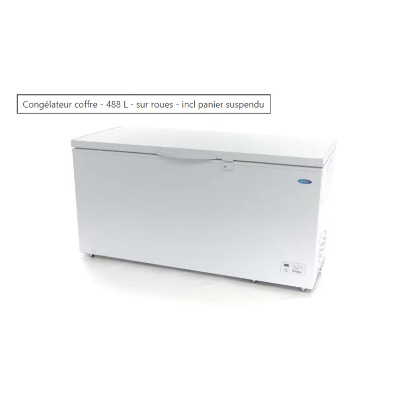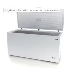 Tout établissement de restauration a besoin d'un bon système de réfrigération. Un congélateur coffre est une option pratique pour la plupart des restaurants, cafés et cantines. Les produits alimentaires peuvent être conservés plus longtemps en les congelant rapidement. Avec une capacité de 488 litres, ce congélateur coffre est une excellente solution. Il comprend un panier suspendu pratique, ainsi qu'un éclairage LED dans le couvercle pour que le contenu soit éclairé lorsque vous l'ouvrez. La poignée est équipée d'une serrure pour que vos produits restent en sécurité. C'est un congélateur aux finitions soignées qui s'intègre parfaitement dans la plupart des cuisines.