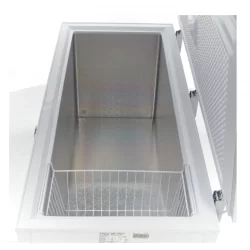 Le corps métallique de ce congélateur coffre est recouvert d'un revêtement blanc. Le couvercle est doté d'un joint antibactérien qui vous permet de conserver vos produits de manière hygiénique. Grâce au thermostat numérique facile à lire, vous pouvez régler la température entre -14 et -24⁰C. Le congélateur peut être utilisé à une température ambiante comprise entre 3 et 38⁰C. L'intérieur du congélateur est équipé d'une sortie d'humidité et le système de refroidissement avec ventilateur utilise le réfrigérant R290, qui ne contient pas de CFC.