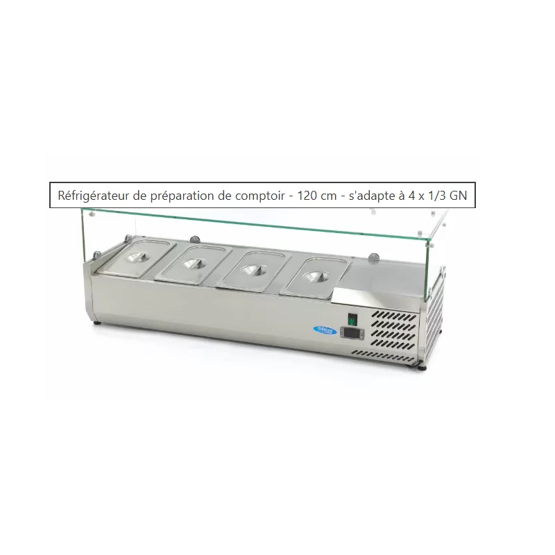 Dans les cuisines de restauration, les équipements de refroidissement sont essentiels pour conserver la fraîcheur des aliments le plus longtemps possible. Grâce au régulateur de température numérique de ce réfrigérateur de préparation, vous pouvez facilement régler la température souhaitée entre 0 et 10°C, afin que les ingrédients soient refroidis exactement à la bonne température. Ce réfrigérateur de préparation professionnel de comptoir peut être utilisé en toute sécurité à des températures ambiantes allant jusqu'à 32°C. De plus, il est à refroidissement statique. Les tuyaux situés dans les parois de l'unité de refroidissement utilisent le réfrigérant R600a, exempt de CFC. Pour éviter la formation de glace, ce réfrigérateur de préparation est équipé d'un cycle de refroidissement spécialisé et d'un évaporateur constant intégré.