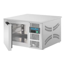 Cellule de refroidissement et de surgélation rapide compacte pouvant refroidir et congeler de grandes quantités d'aliments en un minimum de temps. Peut refroidir de + 70C à + 3C en 90 minutes. Le goût, l'apparence et la qualité nutritive des aliments sont préservés. Porte avec isolation de 60mm afin d'assurer une grande efficacité thermique. Joint de porte amovible pour faciliter le nettoyage. Sonde alimentaire incluse.