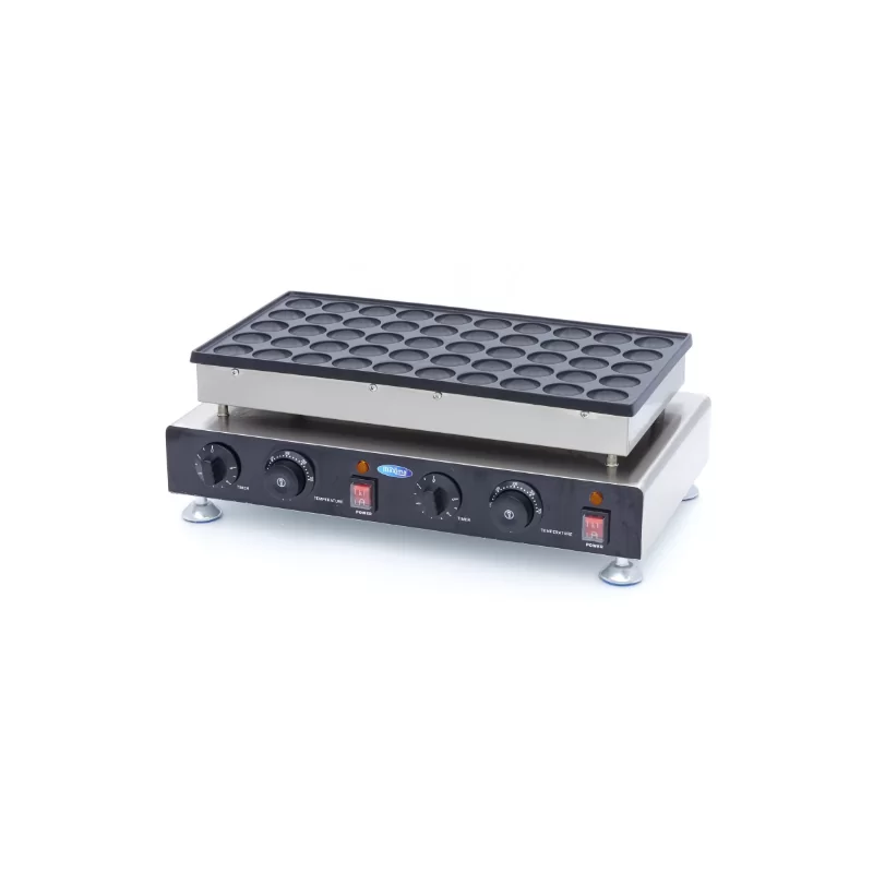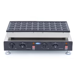 Avec cette mini crêpière électrique, vous pouvez faire 50 savoureuses mini crêpes de Ø 4,3cm en un rien de temps. Cette mini crêpière dispose de deux éléments chauffants avec des boutons de commande séparés pour le thermostat et la minuterie. Une crêpière idéale pour les marchés, les foires mais aussi pour les restaurants et les cantines.