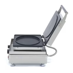 Réalisez des crêpes parfaitement rondes avec cette crêpière électrique professionnelle. Elle dispose de deux éléments chauffants, ce qui permet de cuire la crêpe des deux côtés. Elle est livrée avec une lèchefrite et une plaque de cuisson antiadhésive en aluminium. Les boutons rotatifs permettent de régler la température et la minuterie.