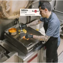 Première plancha professionnelle du marché proposant deux zones de cuisson distinctes sur un format profondeur, cet appareil permet des préparations simultanées à des températures différentes.
