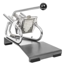 Ce coupe-frites Tellier peut être utilisé sur un plan de travail comme sur une table, pour couper une grande quantité de pommes de terre rapidement et facilement. Il est solidement fixé sur une base lestée en fonte pour une stabilité accrue, et dispose d'une goulotte intégrée. Cet appareil est très facile à utiliser et tout aussi facile à nettoyer.