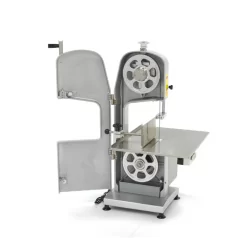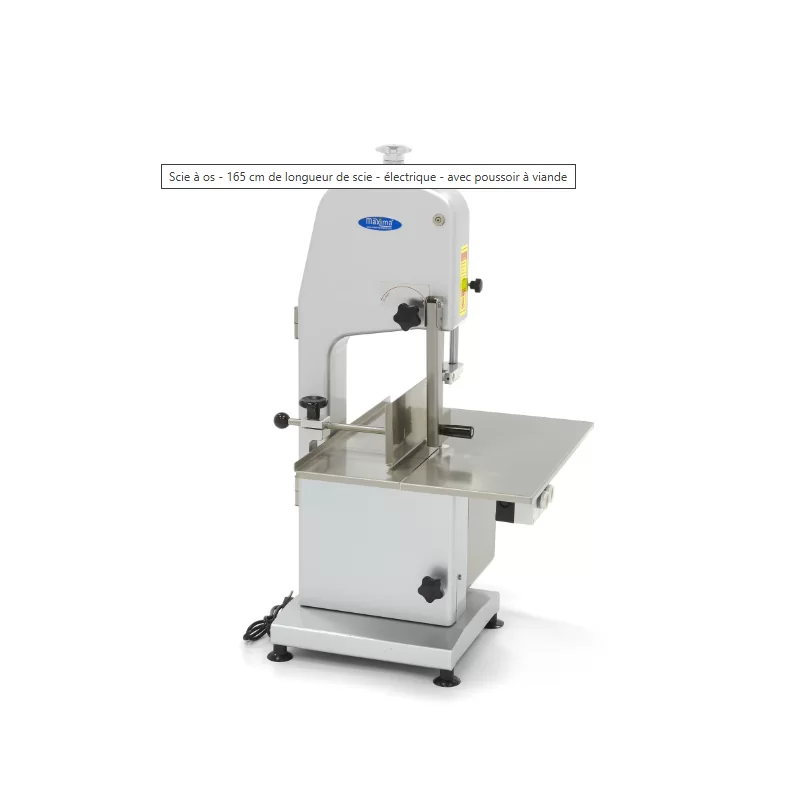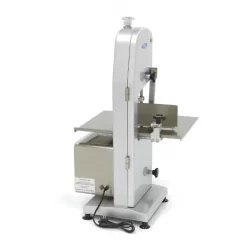 Bien que cette scie soit assez compacte, elle est bien adaptée à un usage professionnel. Elle dispose d'une lame de scie de 165 cm de long qui permet de couper des tranches de 0 à 160 mm d'épaisseur. Elle est également très facile à utiliser et ne possède qu'un seul bouton Marche/Arrêt. Grâce au moteur de haute qualité, vous pouvez utiliser cette scie à os facilement, sans devoir faire de pause. Vous pouvez également régler la tension de la lame de scie. Le boîtier de la scie à os est en fonte d'aluminium avec peinture. Cette scie à os dispose également d'une table spacieuse avec une plaque d'étalonnage et un poussoir à viande pour faciliter l'utilisation.