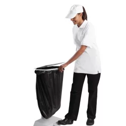 Le porte-sac est conçu pour permettre un remplissage facile des sacs-poubelles pendant les tâches de nettoyage et d'entretien, ce qui permet au personnel de gagner du temps sur le