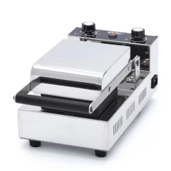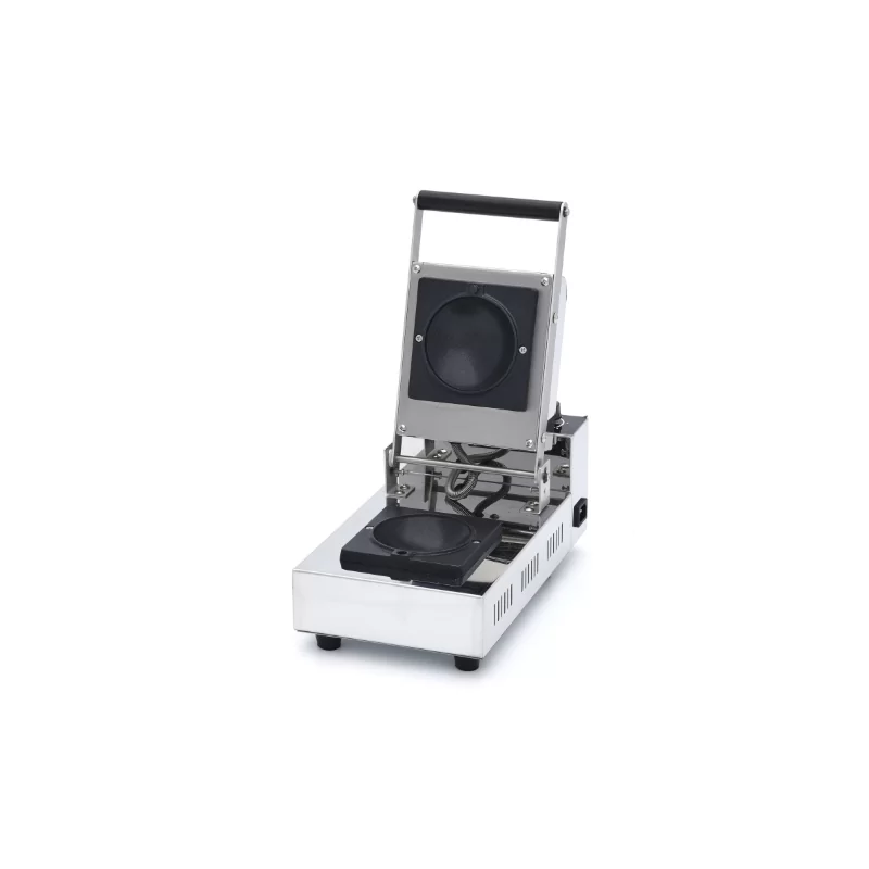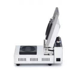 Avec cette machine à panini au gelato, vous pouvez préparer de délicieux paninis à la crème glacée, un petit pain croustillant fourré à la crème glacée. Il dispose de deux boutons rotatifs pour la température et la minuterie. L'appareil à panini au gelato est composé d'un boîtier en acier inoxydable et d'une plaque de cuisson en aluminium avec revêtement antiadhésif. Parfaite pour les salons de crème glacée.