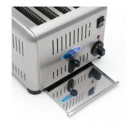 Ce grille-pain de haute qualité est spécialement conçu pour les établissements de restauration professionnelle. Il peut contenir jusqu'à quatre tranches de pain et présente un design rétro élégant. Ce grille-pain allie fonctionnalité, durabilité et esthétique, ce qui en fait un choix fiable pour les cuisines occupées et les utilisateurs exigeants.