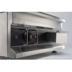 Cette plaque grille électrique robuste est conçue pour une utilisation professionnelle dans les cuisines commerciales, les foodtrucks ou tout autre environnement exigeant. La surface de cuisson lisse et chromée assure une excellente conduction thermique et permet une préparation rapide et homogène des aliments, même en cas d’utilisation intensive. Grâce au réglage précis de la température, vous gardez un contrôle total sur le processus de cuisson. Avec un châssis en acier inoxydable solide et un bac récupérateur de graisse amovible, cette plaque est à la fois résistante et facile à nettoyer. Dimensions : 500x520x310 mm (LxPxH) – Puissance : 3 kW – Poids : 29,5 kg.