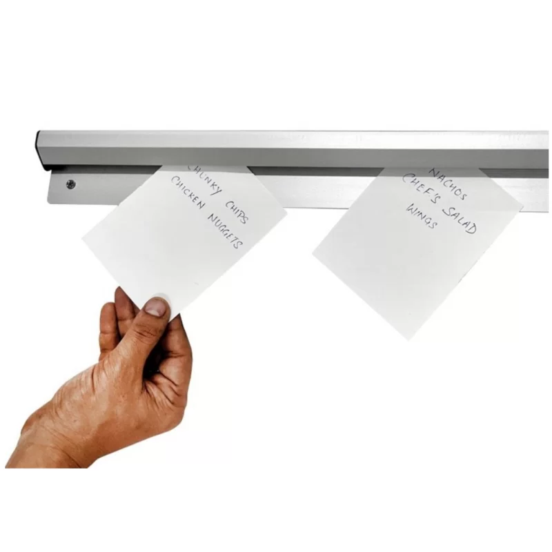 Gardez vos commandes de nourriture organisées avec ce porte-bons de commande mural de 45,7 cm de Vogue. Maintenant fermement les commandes, le porte-bons de commande permet de maintenir une communication constante entre la salle et la cuisine, assurant que votre service fonctionne sans heurts pour offrir aux clients une expérience culinaire de première classe. Facilement fixé à n'importe quel mur, il permet de garder les commandes visibles pour garantir un service alimentaire efficace. Incroyablement abordable, fiable et durable, le porte-bons de commande est parfaitement adapté à toute cuisine commerciale occupée.
